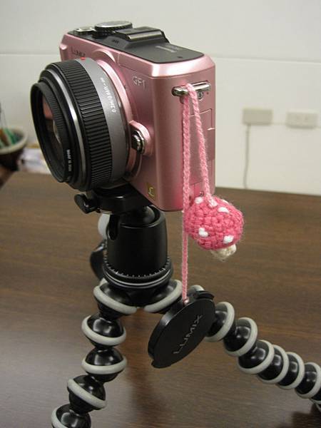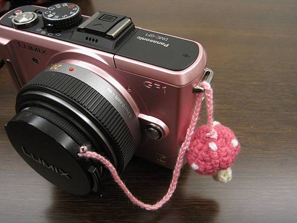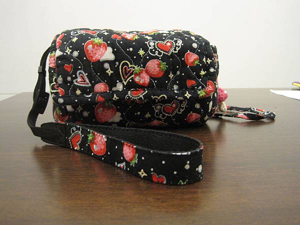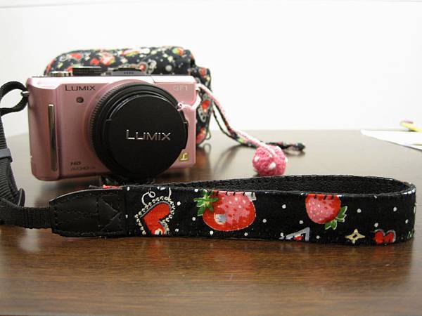 把原廠背帶剪成適當長度,在加上和相機包同款的草莓布,就變成一條可愛的手腕帶囉!!